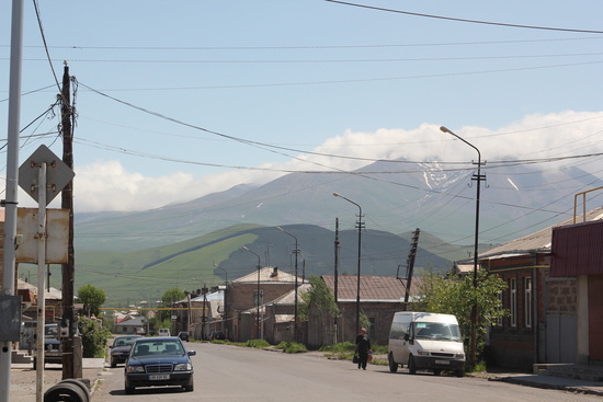 обычная улица Ахалкалаки с видом на горы: