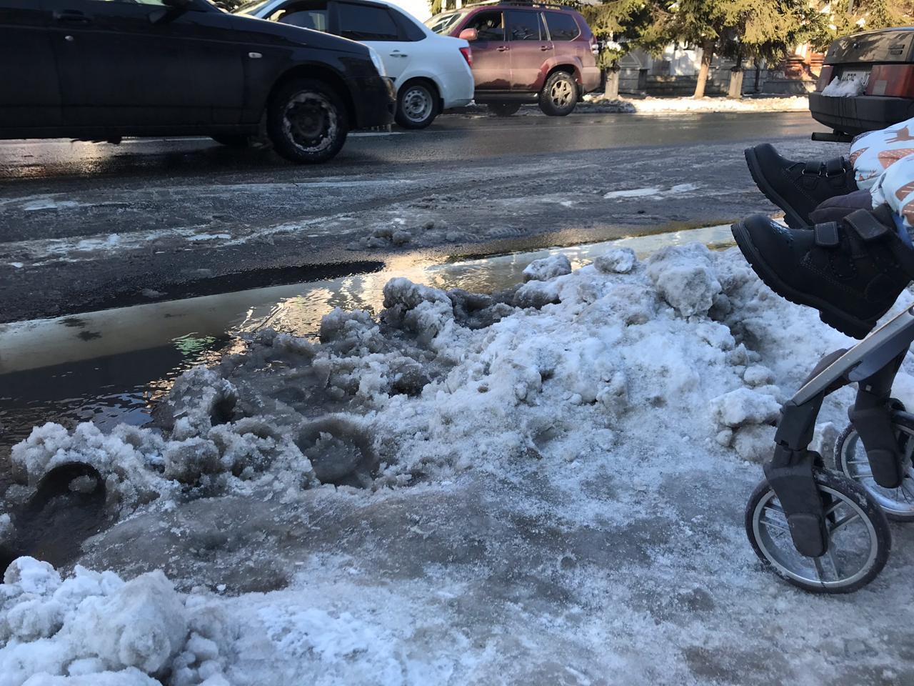 ходить сегодня по городу не просто очень трудно, но и опасно. солнечные стороны улиц это одна сплошная лужа, а теневые - огромные массы неубранного снега. вечером все это замерзнет и превратится в жуткий гололед. упасть и сломать себе шейку бедра или просто шейку здоровому человеку вообще нет никакой проблемы. поэтому, лучше сидеть дома. ну а с детской коляской вообще большая ошибка выходить.