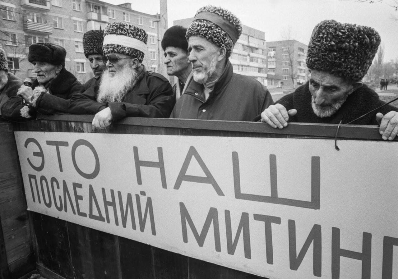 наткнулся в одном осетинском паблике на интересное фото, раньше его не видел. это митинг в Назрани 20 ноября 1992 года. оно говорит само за себя. через год в Пригородном районе начнется недельная война, в которой ингуши сейчас обвиняют исключительно осетин. буквально недавно я писал об этом по случаю видеоинтервью одного из известных ингушских общественников. разбирал его слова, но зачем анализ, если есть вот такие фото с прямыми угрозами?