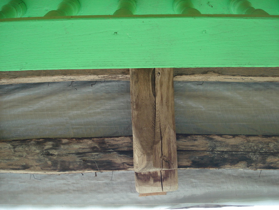 Из-под новых (зеленых) деталей декора видны старые перекрытия