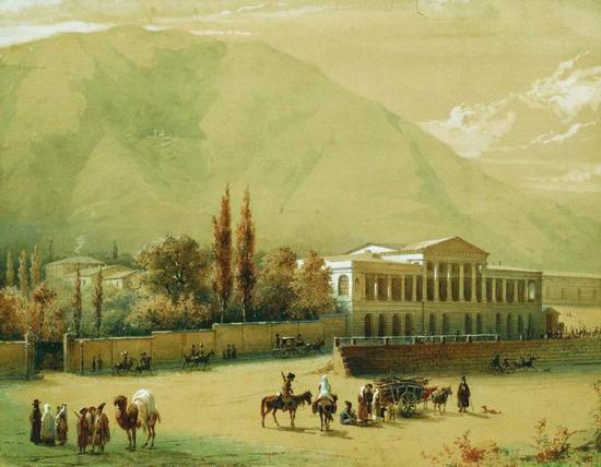 Василий Тимм. Дом главнокомандующего Отдельным Кавказским корпусом, в котором Е. И. В. Государь Наследник Цесаревич изволил останавливаться во время своего пребывания в Тифлисе 25-29-го сентября 1850 года. Рисунок 1851 года. www.liveinternet.ru