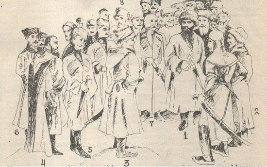 Интересно, что среди художников,  обратившихся после революции к карикатуре и плакату, среди таких громких имен, как Дени, Кукрыниксы, Кокорекин, Моор, был и и дагестанский художник Халил-Бек Мусаясул (Мусаев),  еще в 1917 году нарисовавший избрание Гоцинского имамом Северного Кавказа.