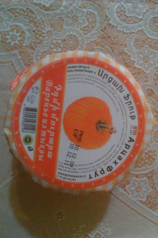 Вот эту баночку я купил на пробу в Гудауте, так как никогда не ел варенье из тыквы и вообще не представлял себе этого вкуса... Очень даже ничего скажу я вам-) Я думал будет какая то мрачная субстанция... ошибся-))