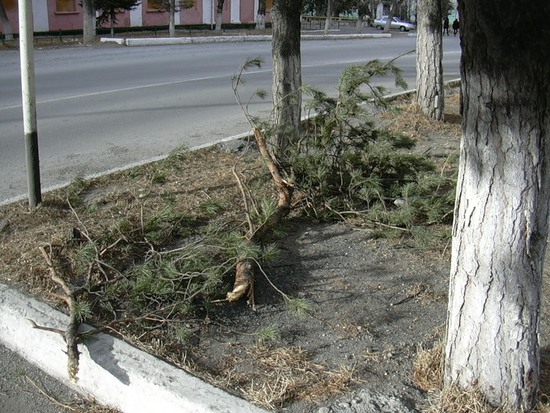 Чуть дальше (вдоль всего проспекта так, в общем-то, там ёлок и сосен много у нас):