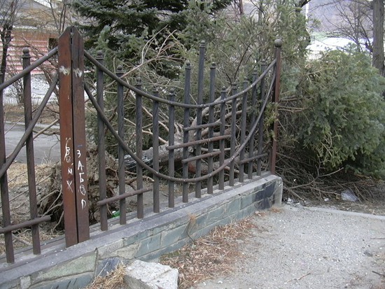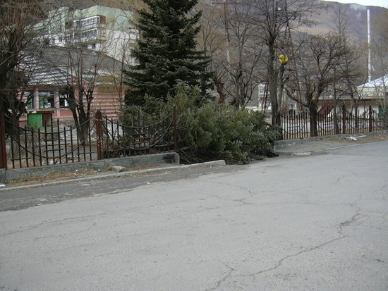 А вот ель у входа на бывшую комбинатовскую канатку (и ещё в нескольких местах вроде бы) прям с корнем вырвало: