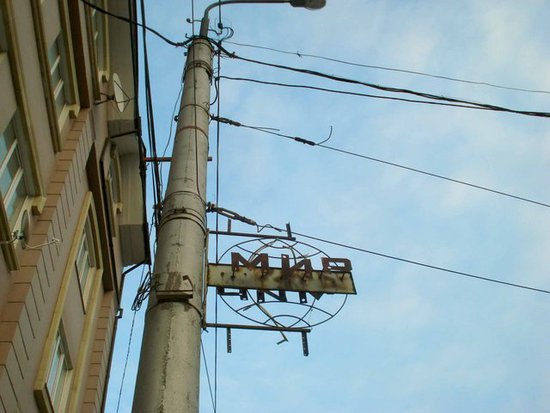 Каюсь - я сам когда-то безжалостно несколько таких шедевров советской агитации снёс на проспекте Гамзатова. Был молод и глуп - чего только ребята-монтажники нашей компании в бытность активного "офрмления и обновления облика" города не посносили((( Приношу свои публичные извинения за столь ревностное "служение" мэрии Махачкалы. К счастью, кое-что осталось почти не тронутым. На улице Коркмасова, между Гамида Далгата и Дахадева: