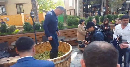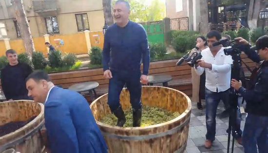 В кафе Винченцо виноделы Южной Осетии устроили праздник сбора урожая. А наш Президент его сделал его еще веселей, а потом, уже серьезно сказал, что, в последние годы виноделие принимает промышленный масштаб. и вина Алании выходят на зарубежные рынки.