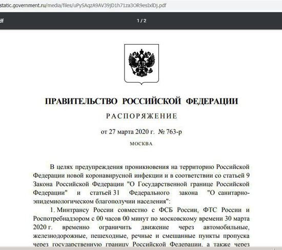Запрет на въезд и выезд из Республики на самом деле ввела Россия, решением о временном ограничении движения через автомобильные, железнодорожные, пешеходные, речные и смешанные пункты пропуска через государственную границу Российской Федерации, а также через сухопутный участок российско-белорусской государственной границы. То есть если вы не дипломат фельдъегерь или не водитель большегрузного грузовика международного сообщения, или не капитан судна, ну или не житель Калининграда и еще несколько "не"- попасть и выехать из РФ вам не удастся.