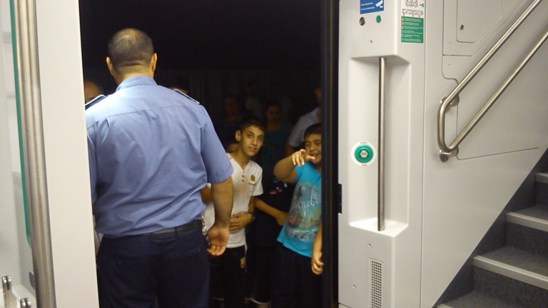 Сумгайытские мальчишки хотят зайти в вагон, но полисмен не разрешает. Не они ли разбили стекло позавчера камнем?