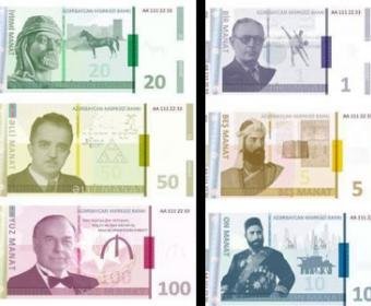 То что вы видите внизу - это проекты новых азербайджанских банкнот, не сбывшиеся. Среди шестерых известных лиц один - ученый, президент национальной Академии Наук. Остальные - государственные деятели, композитор и меценат. Но на нынешних наших банкнотах портретов нет.