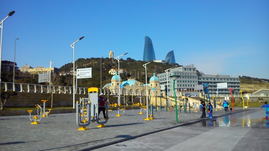Морозным ясным днем, пройдя мимо замерзших фонтанов напротив Кабмина, спустился к морю и прогулялся по Новому Бульвару. Раньше на этом месте было черное нефтяное поле с вышками-качалками и сетью полуржавых труб. В море множество затонувших посудин. Лет пять назад вывезли черную почву и завезли новую, посадили деревья, установили освещение, скамейки и гигантское Колеса Обозрения, почистили море. Получилось 1,8 километровое продолжение старого и сильно обновленного бакинского Бульвара.