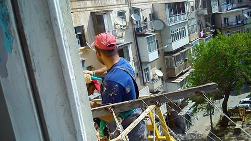 Мой старый 4-6-этажный дом, построенный в 1950каком-то году, впервые за его историю капитально ремонтируют за госсчет. Ни в богатые советские, ни в еще более богатые нефтяные годы независимого Азербайджана внутренняя сторона здания, крыша не ремонтировалась, все за счет жителей. Только внешний фасад был облагорожен туфом и огнями в годы последнего нефтяного бума. И вот, когда в госбюджете нет прежнего счастья, здание с дворовой стороны, блоки изнутри штукатурятся, белятся и красятся.