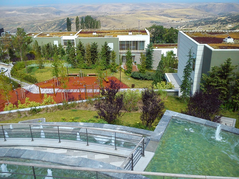 Уровень обслуживания - как в турецких курортах, да и руководство тут состоит из турецких специалистов. Остальной персонал - молодые парни и девушки из соседних сел и райцентра Сиазан. Все включено, есть зимний бассейн и летний, с эффектом воды, выливающейся в горизонт. Много тренажеров, бензиновый и электрические автомобили для перевозки отдыхающих в бассейны и по другим выбранным ими адресам. Первое мое удивление было как раз по этому поводу - когда я оставил мое авто на парковку и вижу, что за мной приехал такой кар-развозчик, чтобы я не возвращался пешком к главному зданию.