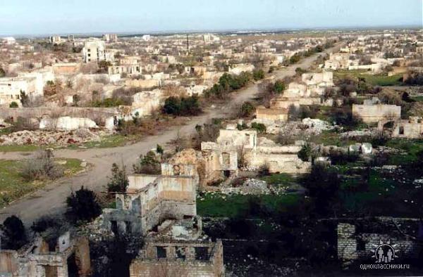 на фото: разрушенный [...], до 1992 года цветущий азербайджанский город Агдам