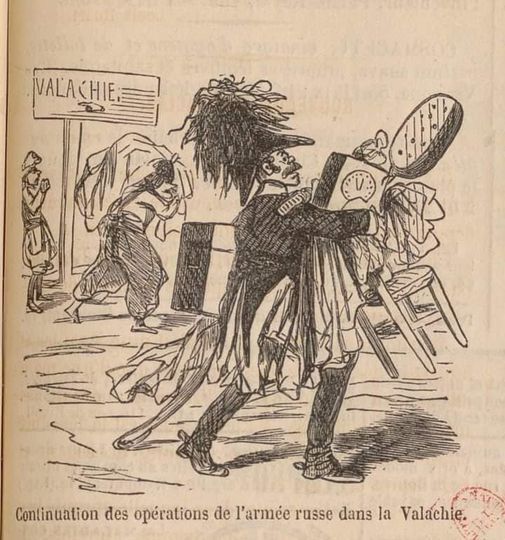 Все это наблюдается азербайджанскими военными и регистрируется в видеодокументах. Новым элементом стало участие российских военных в демонтаже крыш и мебели из домов, которые перейдут под контроль законной азербайджанской власти. По всей видимости, русские увезут снятое к себе в Ростовскую область. [...]. На исторической карикатуре русский офицер крадет имущество жителя Валахии