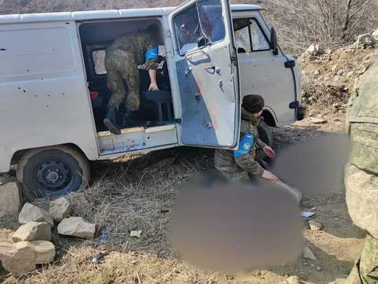 МВД Азербайджана сообщает о поступавших к ним информациях про незаконную перевозку оружия и боевиков по второстепенным, альтернативным дорогам через села, помимо российского миротворческого контроля. Наша опергруппа выдвинулась, перехватила военный грузовик с оружием, потребовала затормозить. Из машины пошла стрельба.