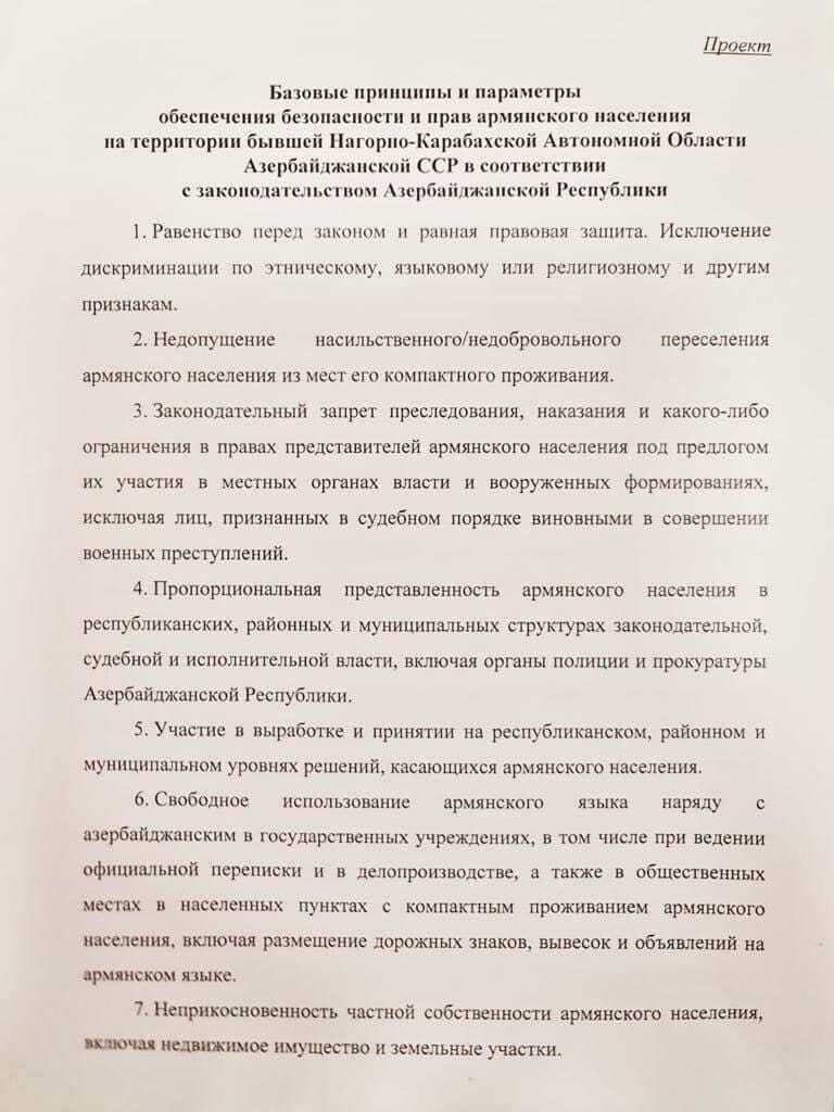 Предлагаю ознакомиться и здесь обсудить. Считаю, что больших поблажек чем в проекте Баку не предложит никак и никогда.