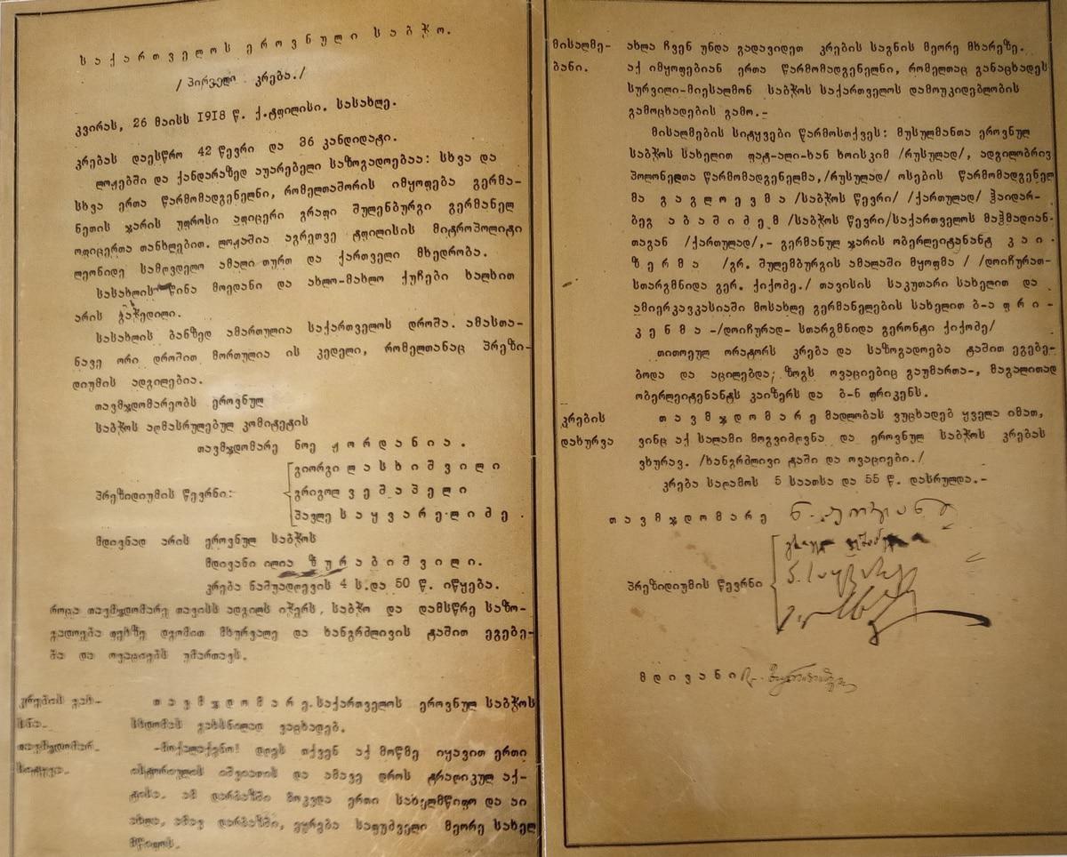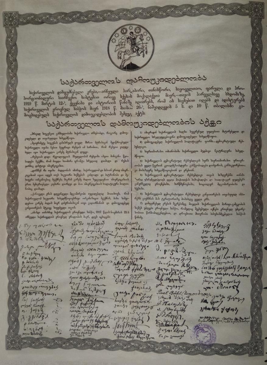1.1. Акт независимости Грузии. Документ принадлежит парламенту Грузии.