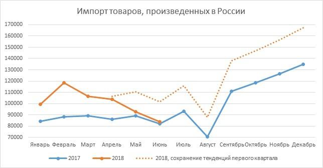 График 2. Импорт товаров (страна происхождения товара – Россия), млн. долл.