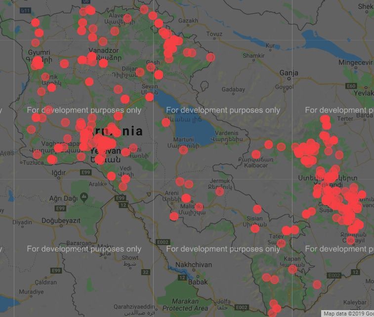 Эта карта – от Всеармянского фонда. Я составил свою карту, на уровне регионов Армении и НКР; вышло следующее: