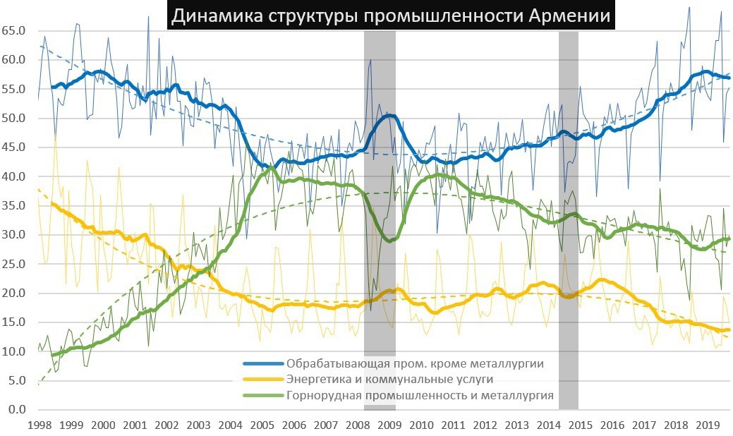 График 5. Динамика структуры промышленности Армении, 1998-2020