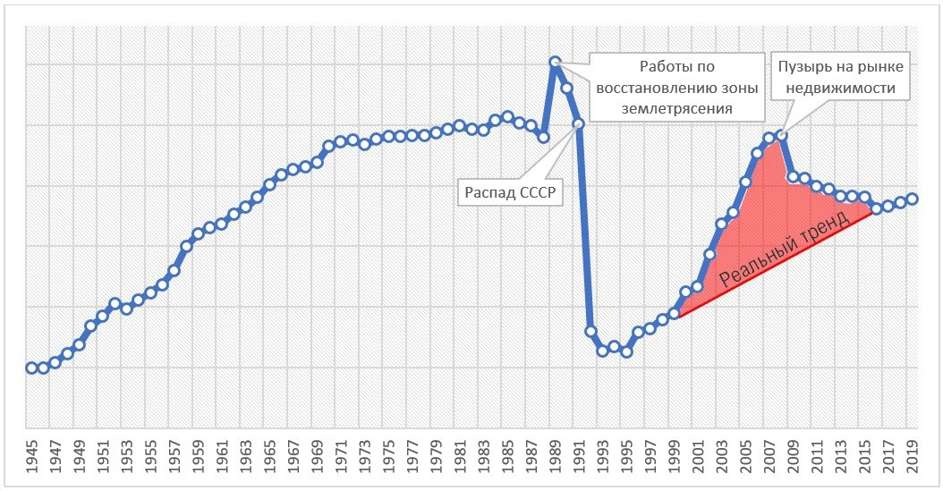 Пузырь в секторе строительства и на рынке недвижимости внес самый большой вклад в обвал экономики в 2008 году. Строительство – неустойчивый сектор и, хотя он может обеспечить заказами промышленность и обеспечить людей рабочими местами, цикл отдачи у него короче, а питается этот сектор «излишками» в экономике, так что этот сектор очень предрасположен к пузырям и кризисам: он ускоряет рост в период роста и ускоряет падение в период спада. Но в Армении этот сектор был настолько раздут, что его спад длился семь лет. В 2003-7 гг. необходимо было не всемерно содействовать строительству со стороны государства, не поощрять бизнес инвестировать в строительство, а наоборот, поощрять инвестиции в другие отрасли и затруднять в строительную сферу (которую надо поддерживать в кризис, проводя контр-цикличную политику).
