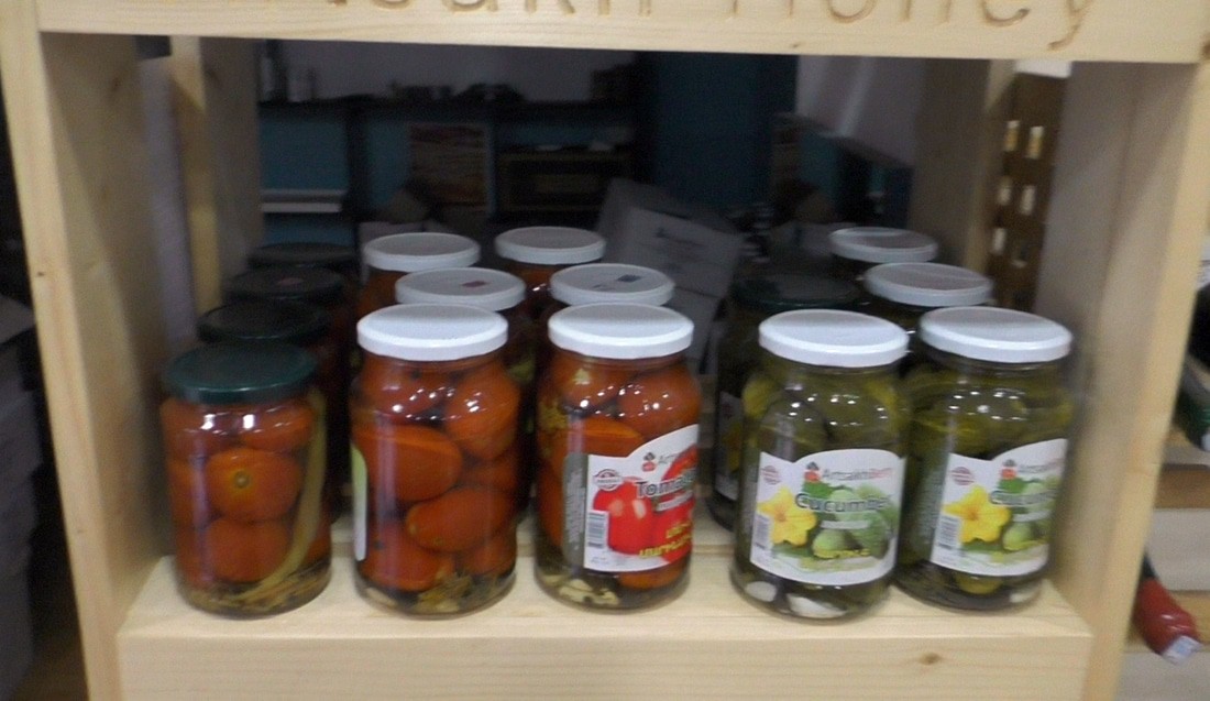 Сейчас на заводе только сторож и один работник, но в "горячую" пору работают до 40 человек, в основном, работниц. Эрик показал, что как работает. Продукция продается не только у нас, она идет в Армению и за границу.