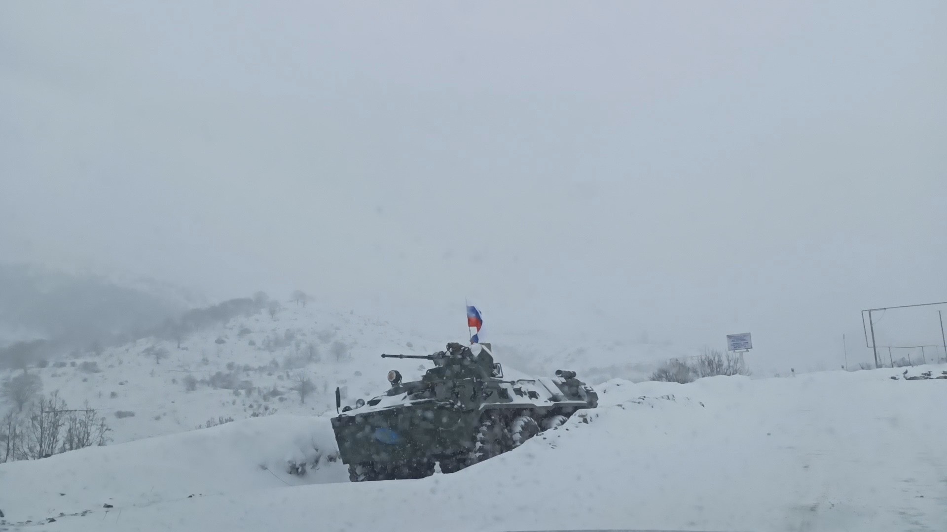 Когда выезжаешь из Степанакерта в сторону Шуши, км. через 3 стоит блок пост, на котором стоят русские солдаты, дальше тоже посты. Они охраняют дорогу и гарантируют ее безопасность, смотрят паспорт и пропускают...