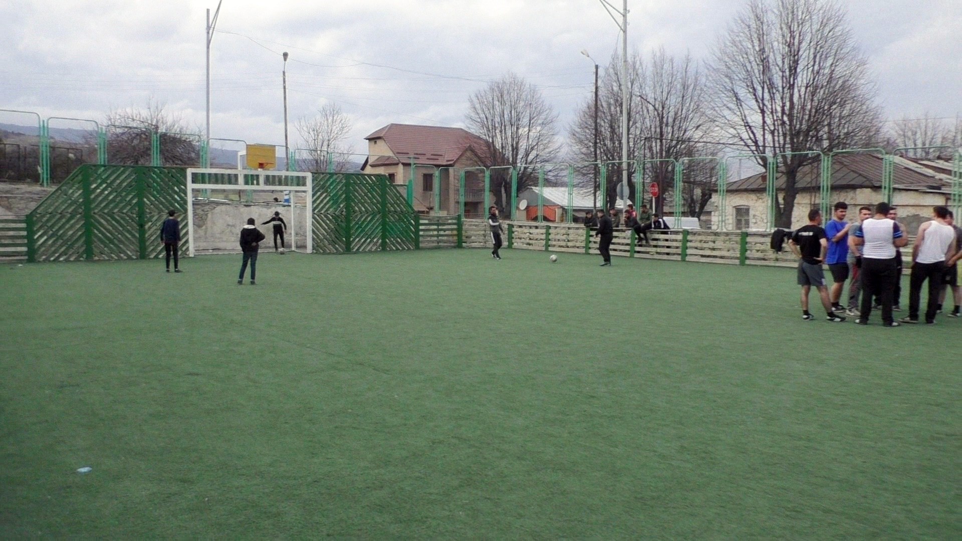Большой стадион тоже работает, видел, что тренируются в любую погоду, даже в ненастную. Сейчас, между районами, которые у нас остались, турнир футбольный проходит. Фото стадиона в г. Мартуни, с разорвавшейся посередине поля бомбой, весь мир увидело, но и его восстановят.