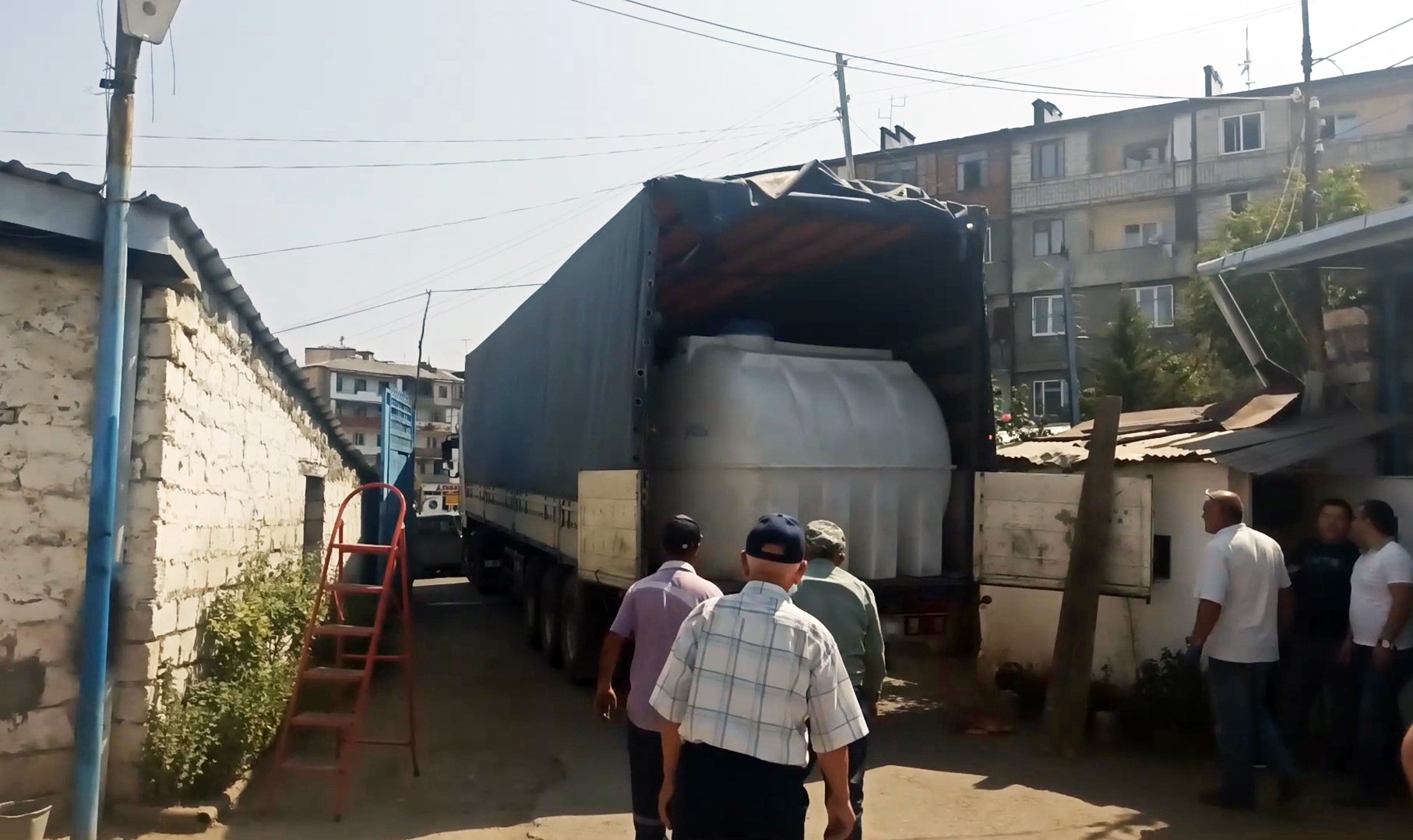 Спросил, сказали, что привезли 15 таких емкостей и вчера штук 10 привезли, к вечеру их установят в тех районах Степанакерта, где люди испытывают недостаток питьевой воды.