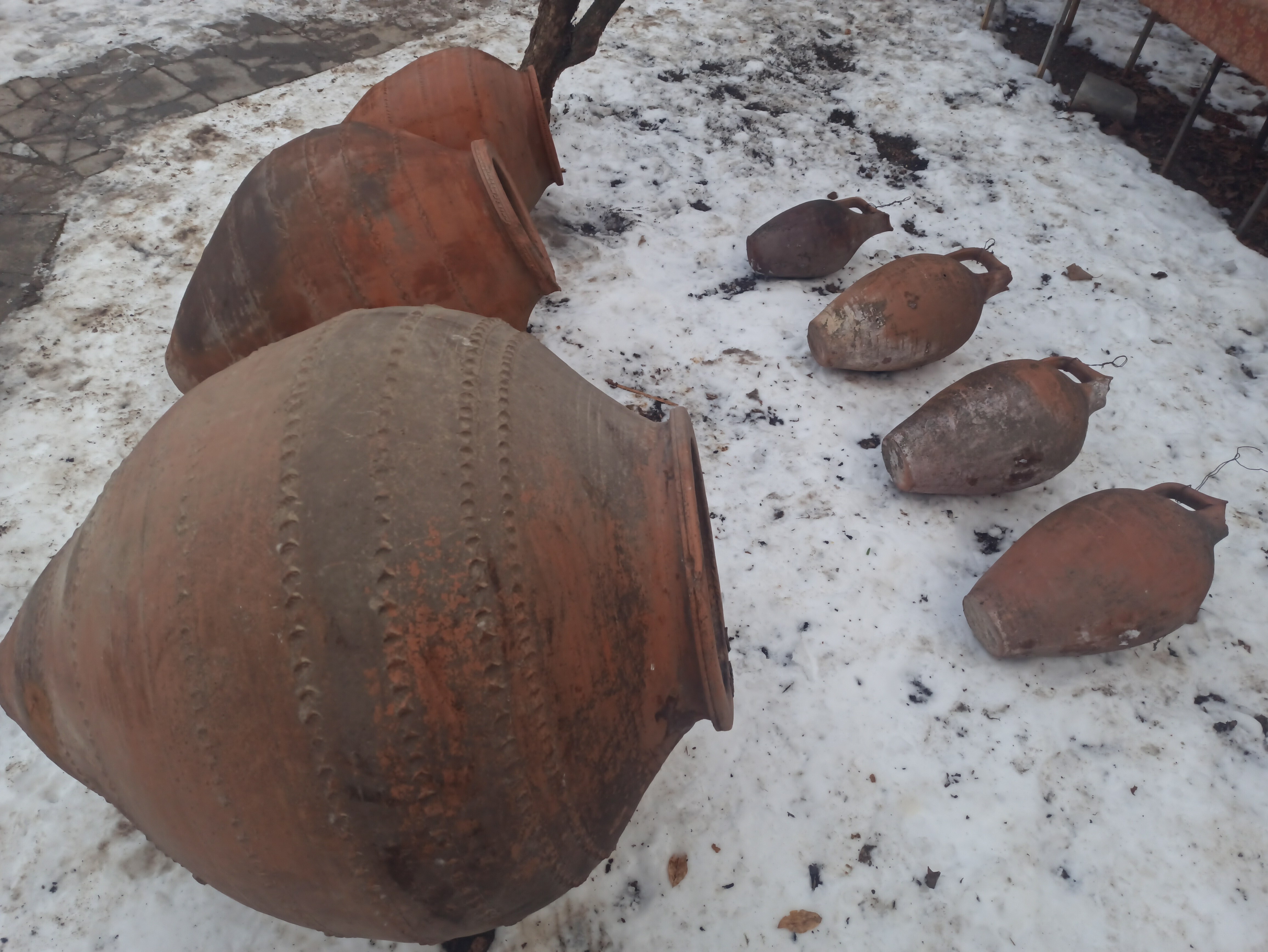 Обычно показываю свою коллекцию древнего оружия, на этот раз расскажу о глиняных изделиях из моего собрания. Чего там только нет: карасы для хранения вина, кувшины для воды, большинство со сломанными носиками, кувшин для сбивания масла из сливок, лампада масляная и многое другое.