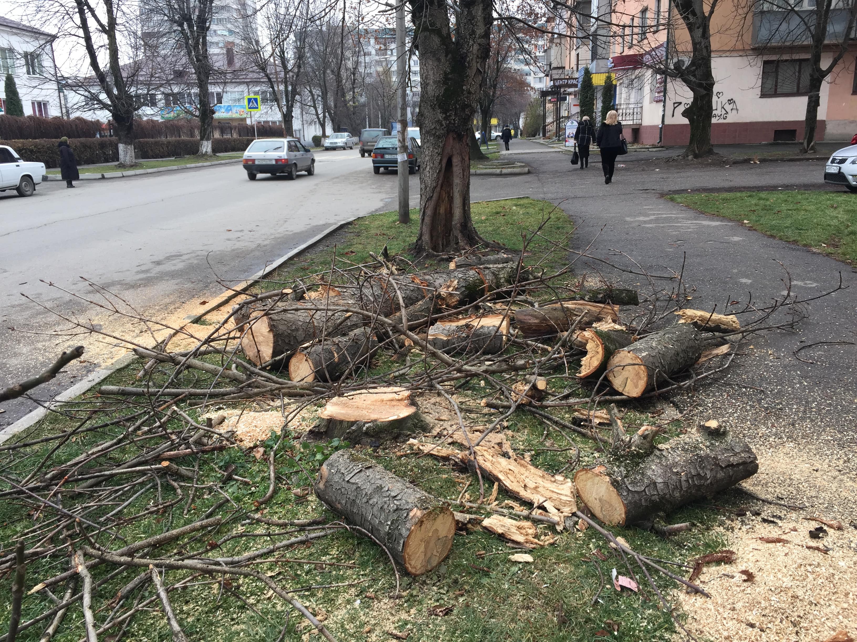 А 3 декабря на площади Коммунаров спилили два крепких дерева, с широкой кроной. На возмущение одной из проходящих мимо женщин -  «зачем вырубаете  эти деревья? В городе и так загазованность от машин», рабочие ответили, что они выполняют распоряжение администрации Нальчика. Якобы деревья состарились. На вопрос, кто и каким образом установил возраст деревьев, в администрации Нальчика  пояснили, что при Управлении ЖКХ есть специальная комиссия, которая периодически совершает объезд города и выносит вердикт деревьям – кому стоять дальше, а кому идти под бензопилу.