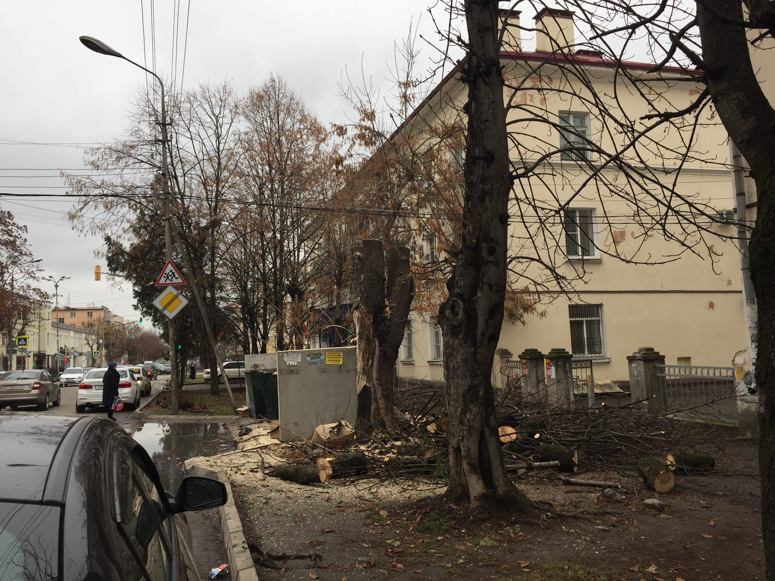 Жительница одного из домов сокрушалась  по поводу вырубки  деревьев. Она заявила, что если и дальше так будут вырубать деревья, то скоро дышать в Нальчике будет нечем, ибо транспортная нагрузка на улицы растет, а зеленых насаждений становится меньше и меньше.