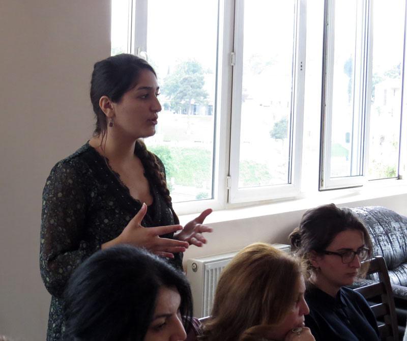 Несколько лет назад наша НПО «Центр гражданских инициатив» участвовала в региональном проекте «Укрепление возможностей женщин в построении мира на Южном Кавказе». И в конце проекта мы выпустили брошюру «Возможности карабахской женщины и мир на южном Кавказе», которую раздали участникам этого круглого стола для ознакомления, ибо впервые в Нагорном Карабахе мы подняли тему гендера...