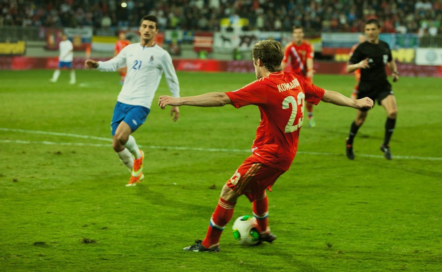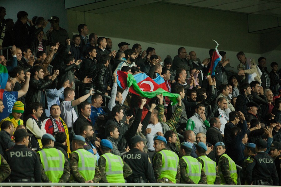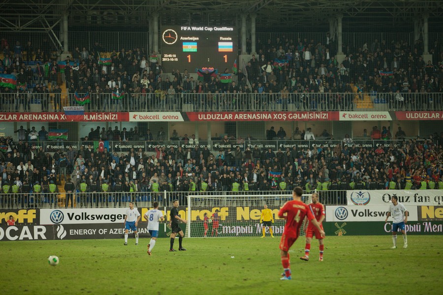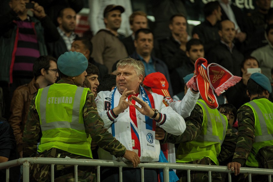 40. Футбольный матч сборных России и Азербайджана завершился со счетом 1:1. Фоторепортаж корреспондента "Кавказского узла" Азиза Каримова от 15 октября 2013 года.