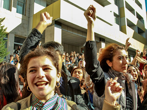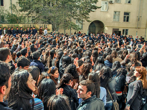 Сотни студентов педагогического университета провели акцию протеста. Баку, 21 октября 2013 г. Фоторепортаж корреспондента "Кавказского узла" Азиза Каримова