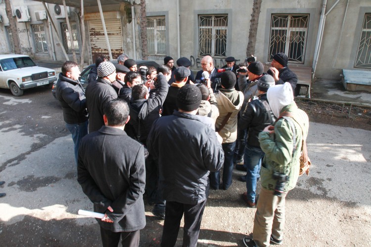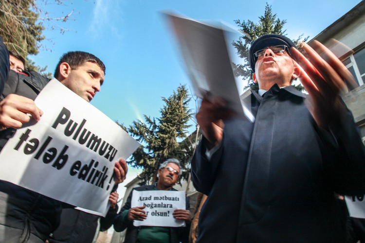 48. Пикет сотрудников газеты "Азадлыг" перед офисом государственной фирмы по распространению печати "Гасид". Баку, 22 января 2014 года. Фоторепортаж корреспондента "Кавказского узла" Азиза Каримова.