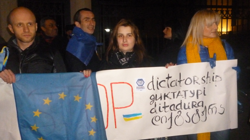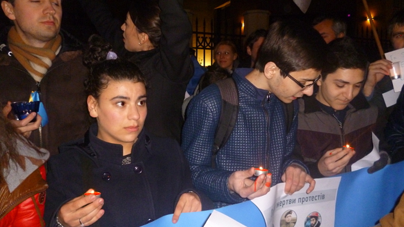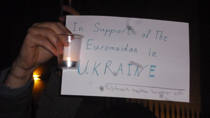 Возле посольства Украины в Тбилиси прошла акция в поддержку участников Евромайдана. В акции приняли участие жители Грузии и Украины, журналисты, политики.