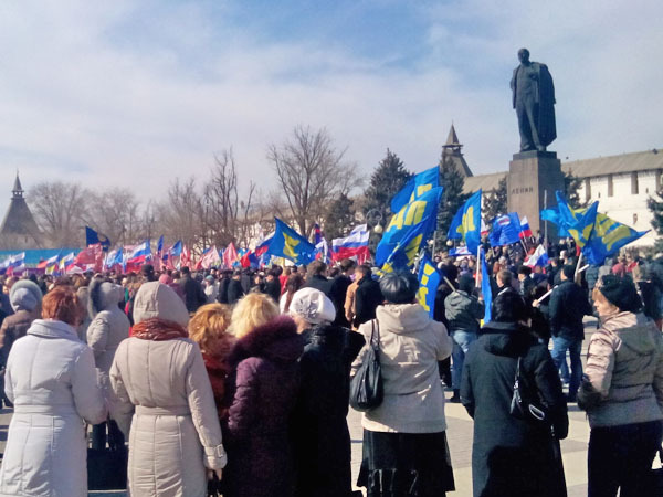 Митинг в поддержку жителей Украины. Астрахань, 9 марта 2014 г. Фоторепортаж корреспондента "Кавказского узла" Елены Гребенюк