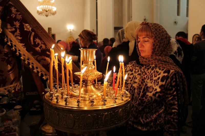 Пасхальное богослужение в Свято-Георгиевском соборе Владикавказа 19 апреля 2014 года. Фоторепортаж корреспондента "Кавказского узла" Эммы Марзоевой .