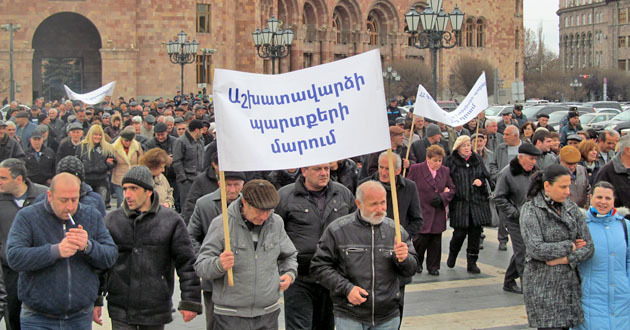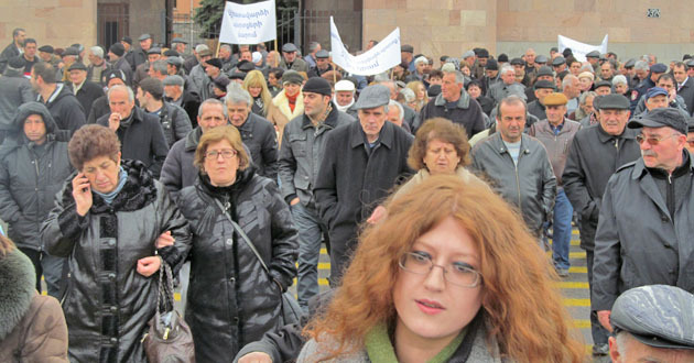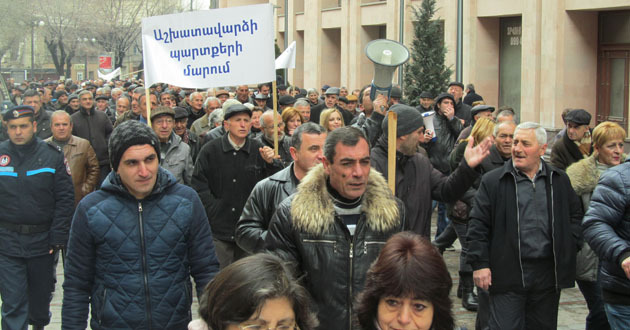Акция бывших сотрудников завода "Наирит" с требованием погасить долги по зарплате. Ереван, 5 марта 2015 г. Фоторепортаж корреспондента "Кавказского узла" Тиграна Петросяна