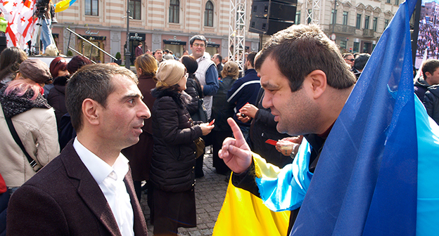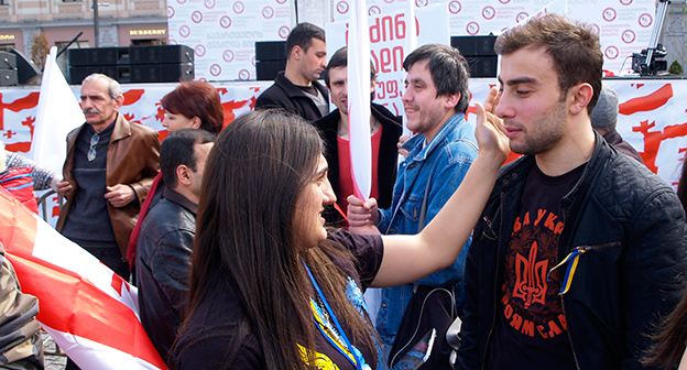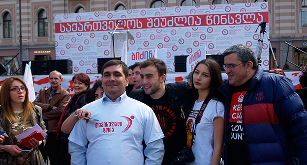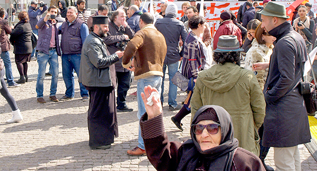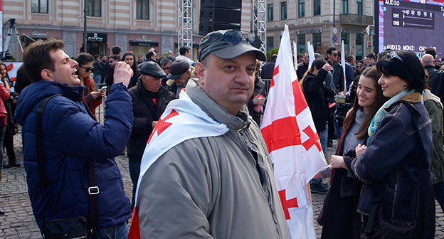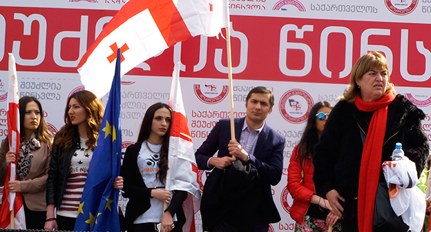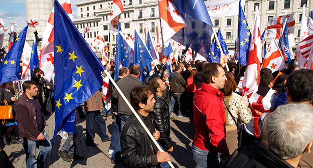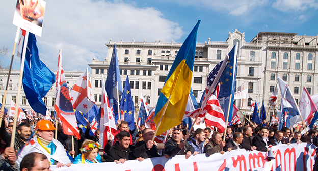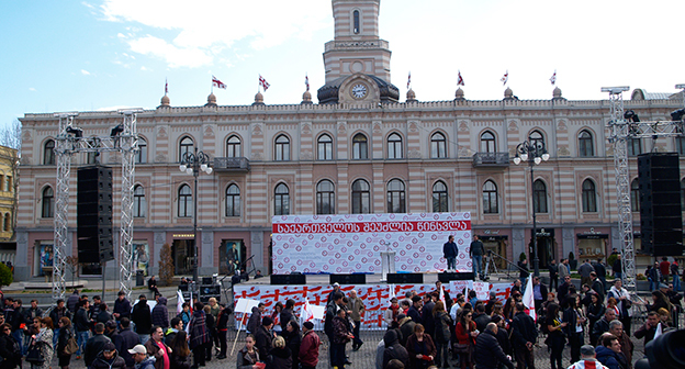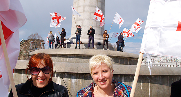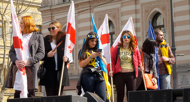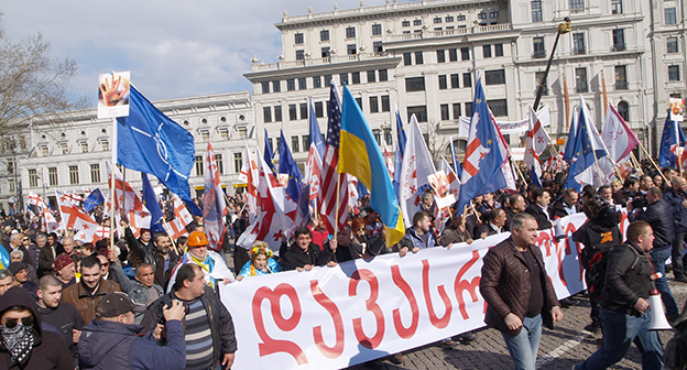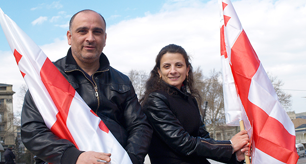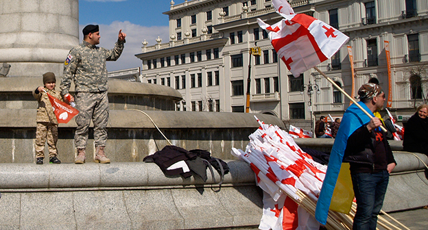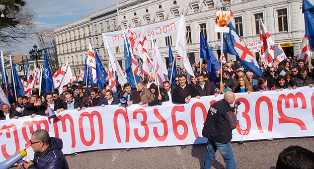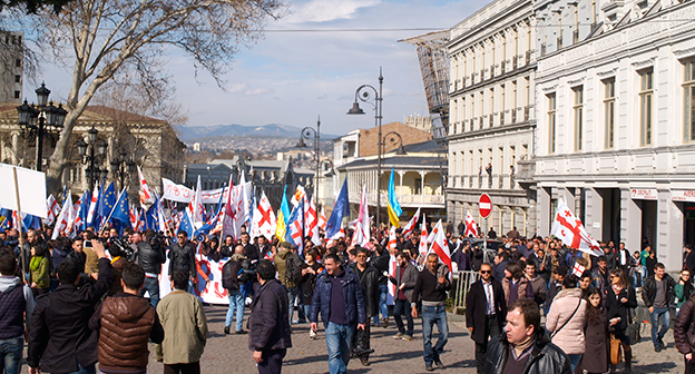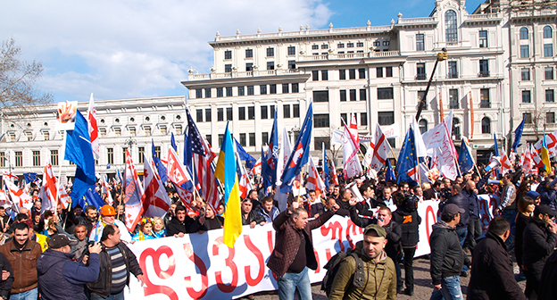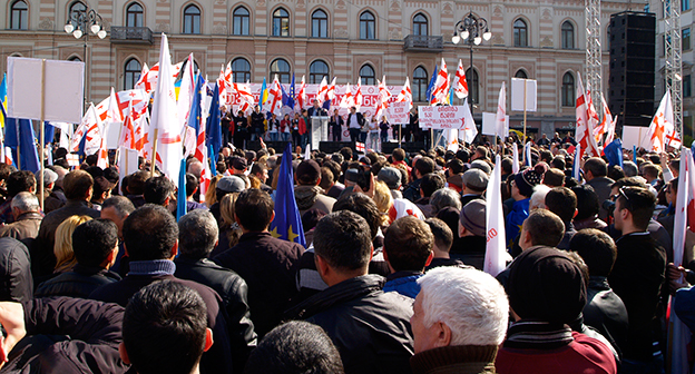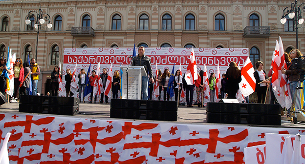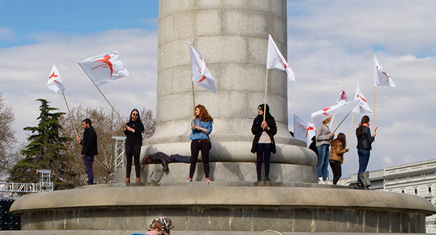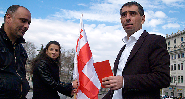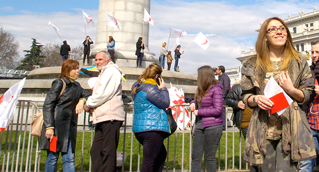 Акция ЕНД в Тбилиси возле здания Госканцелярии. 21 марта, Тбилиси. Фоторепортаж корреспондента "Кавказского узла" Беслана Кмузова