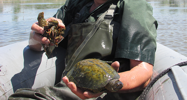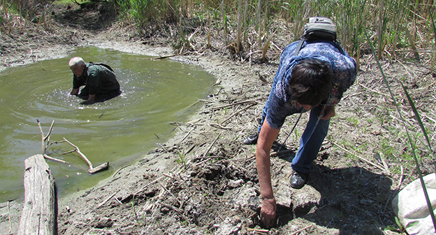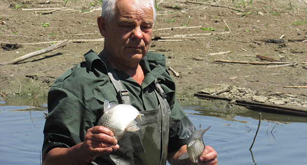 Пенсионеры хутора Лещев Ленинского района Волгоградской области переселяют рыбу и раков из пересыхающего озера в обводненный ерик. Фоторепортаж корреспондента "Кавказского узла" Вячеслава Ященко
