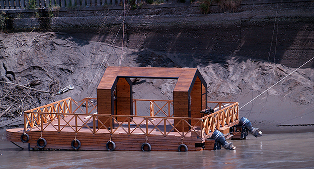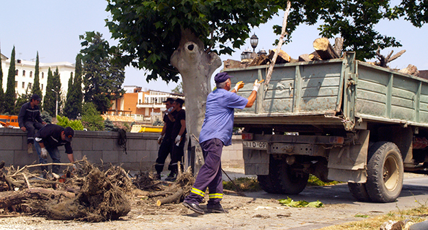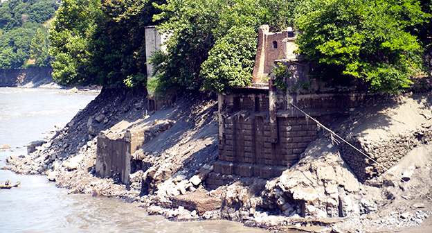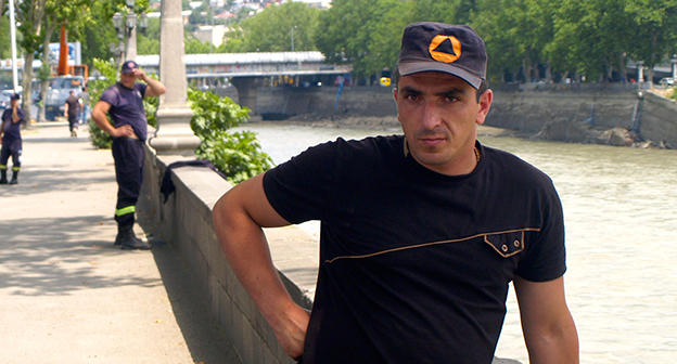 Осушение Куры во время поисковых работ. Тбилиси, 5 июля 2015. Фоторепортаж корреспондента "Кавказского узла" Беслана Кмузова.
