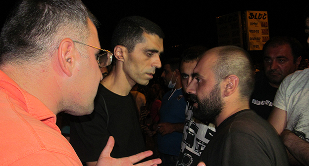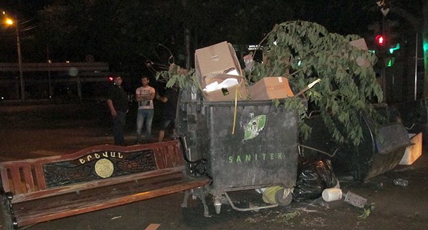 Вечером 20 июля произошли столкновения между сторонниками отряда «Сасна Црер», захватившего полк патрульно-постовой службы полиции Армении, и силовиками. Активисты выдвинули ультиматум силовикам – разрешить обеспечить едой мятежников и заложников. После отказа силовиков выполнить требование активистов, манифестанты попытались прорвать полицейский кордон. Манифестанты забросали полицию камнями, в ответ силовики применили слезоточивый газ и спецсредства. В результате пострадали более 50 человек, в том числе порядка трех десятков полицейских. Оппозиция назвала зачинщиков столкновения провокаторами.