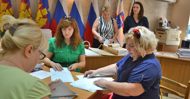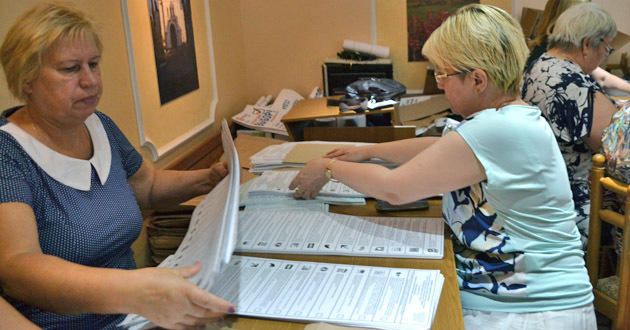 Члены УИКов пересчитывают в ОИКе № 50 плученне из типографии бюллетени