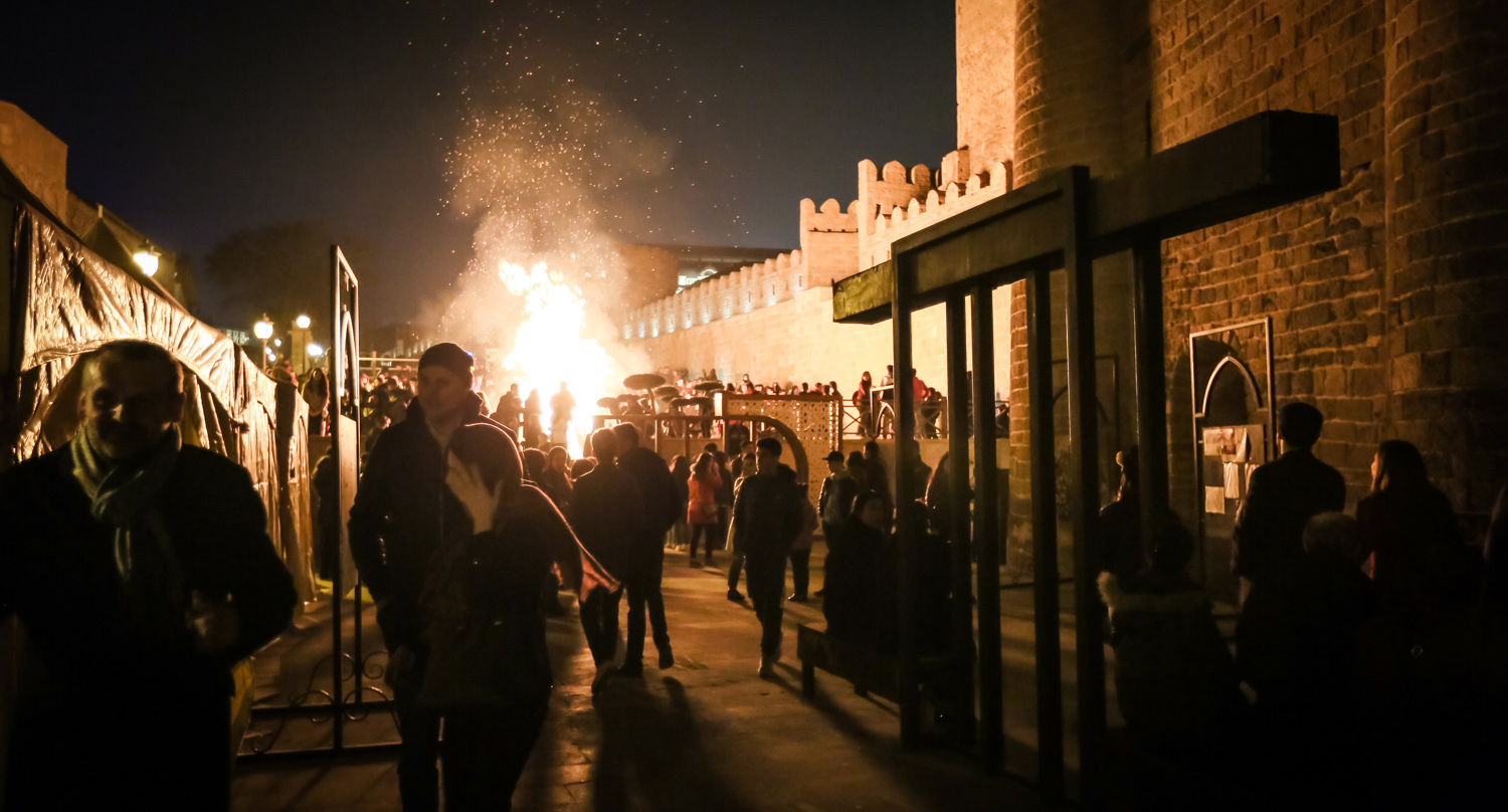 Праздничные мероприятия начались еще 18 марта с зажжения праздничного костра у Девичьей Башни в Старом городе в центре Баку. Фоторепортаж Азиза Каримова для “Кавказского узла”.