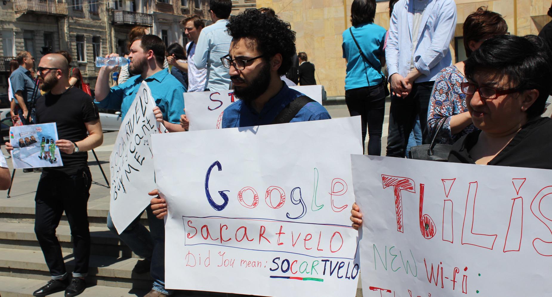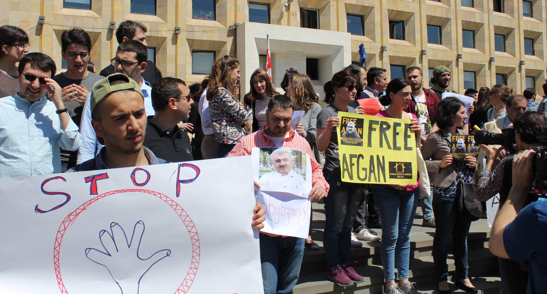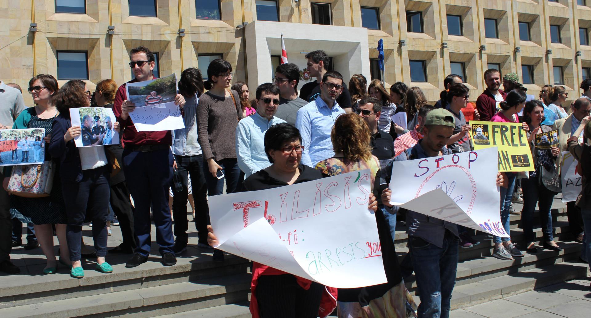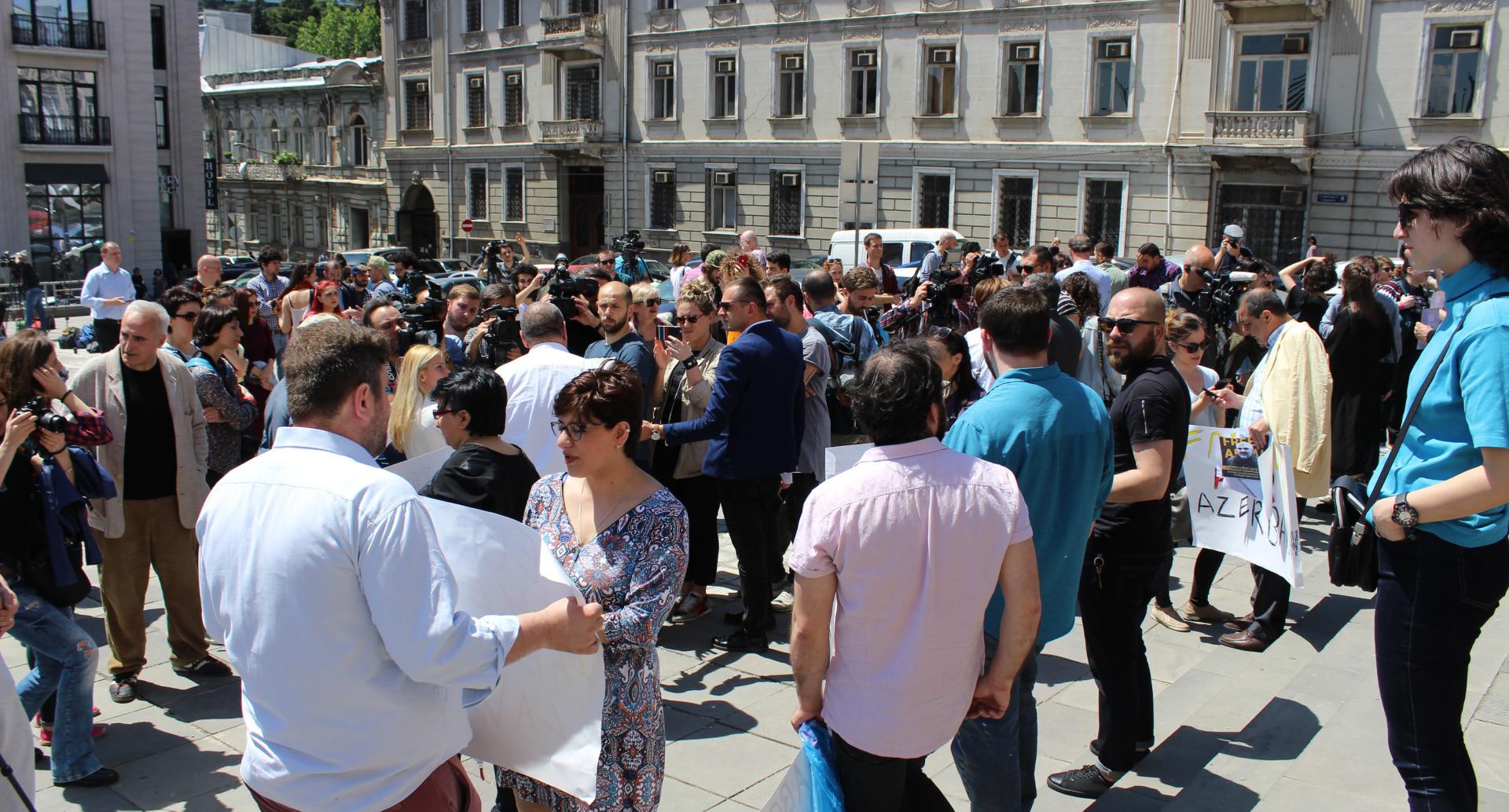 Грузинские журналисты провели акцию в поддержку коллеги из Азербайджана Афгана Мухтарлы