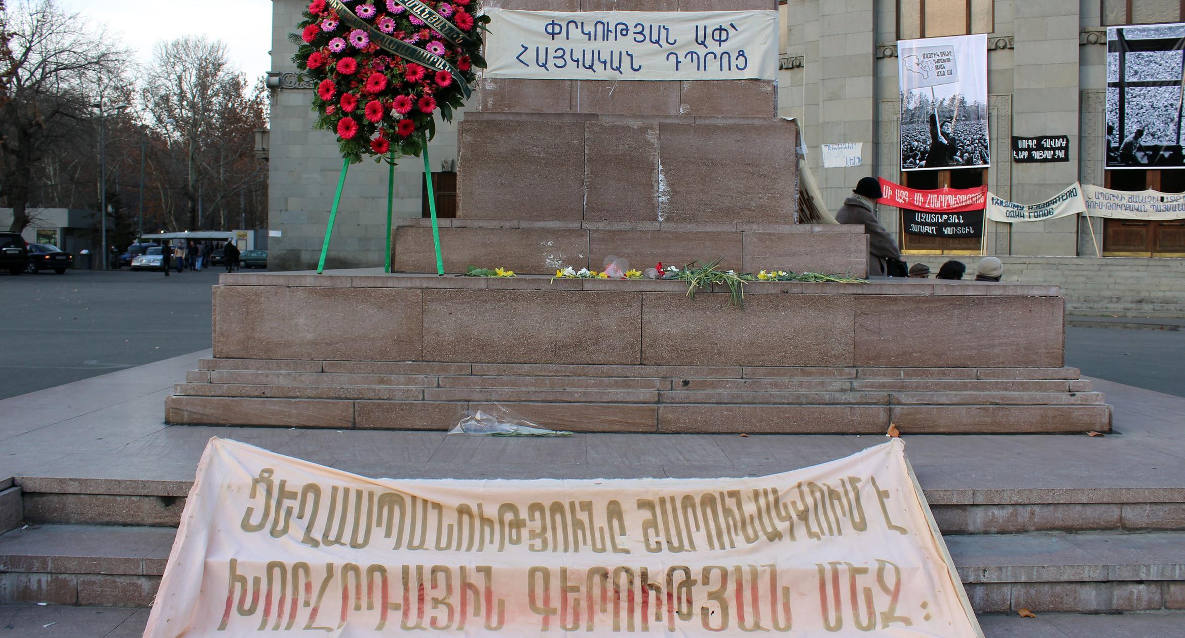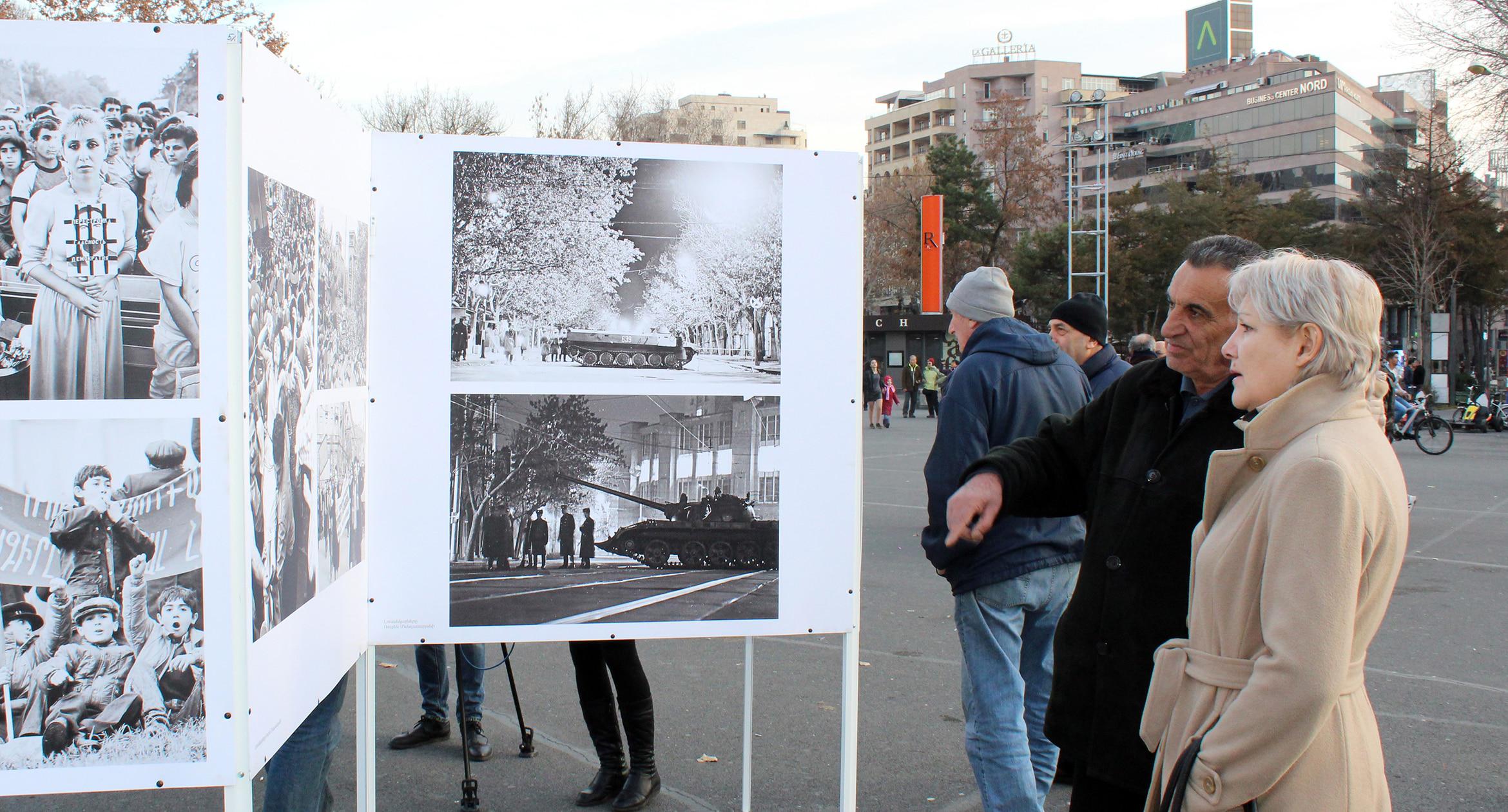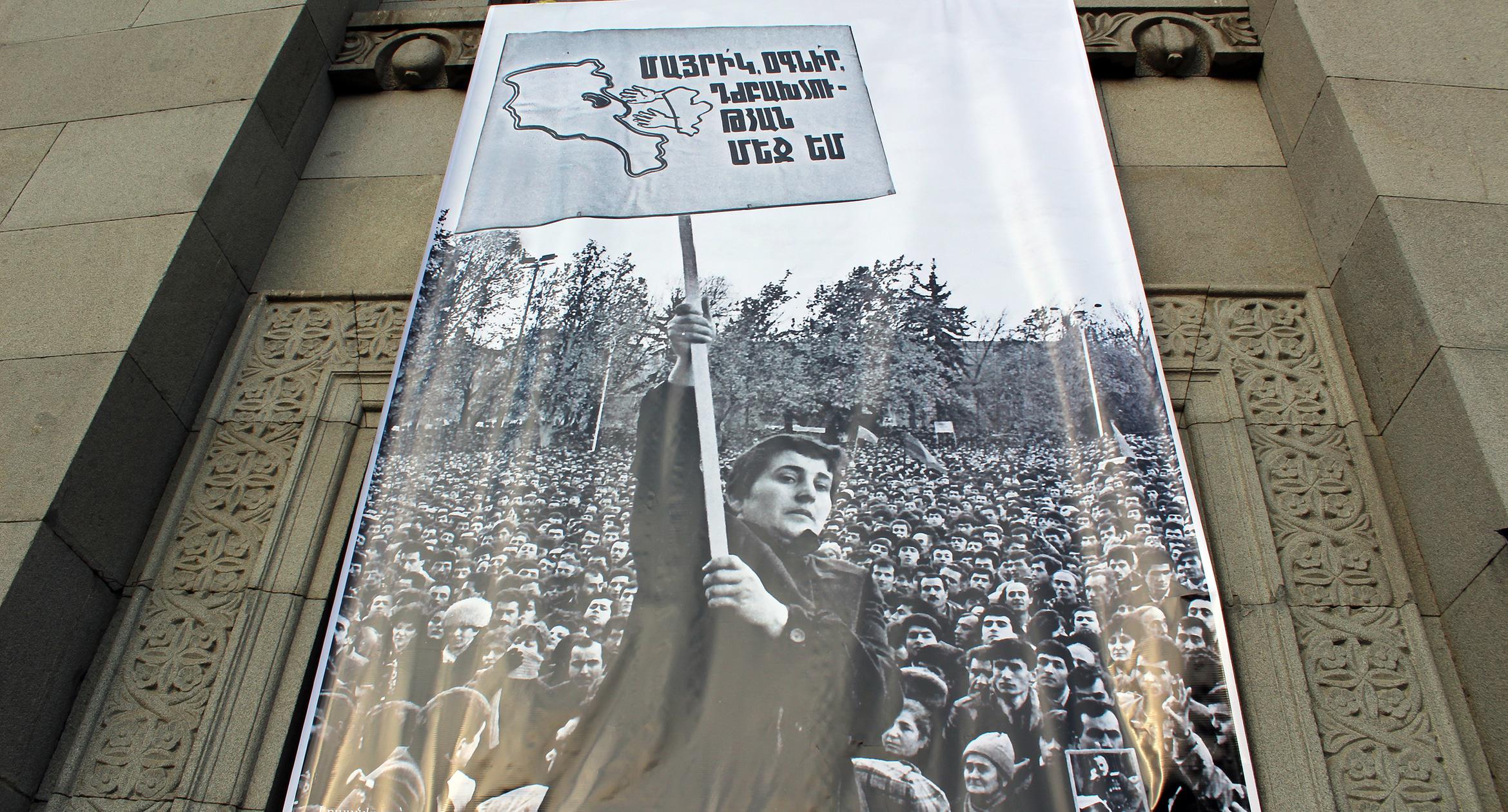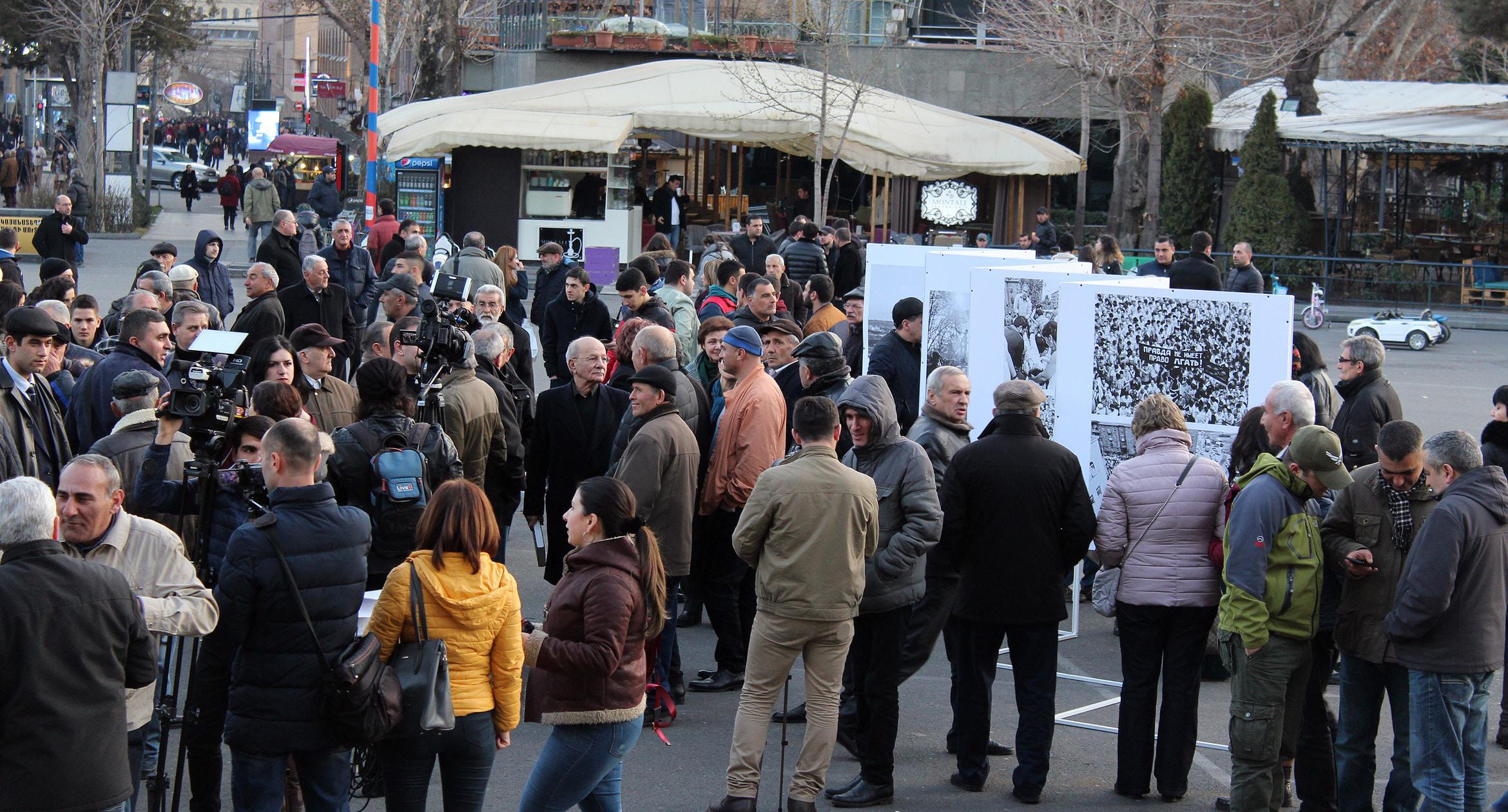 30 лет назад, 20 февраля 1988 года, на ереванской Площади Свободы состоялся первый митинг Карабахского движения. 20 февраля 2018 года на площади вновь появились транспаранты с требованиями присоединения Нагорного Карабаха к Армении. Однако на этот раз они были музейными экспонатами. На площади также представлены фотографии ереванской хроники 30-летней давности. Экспозиция будет доступна для жителей и гостей армянской столицы до 22 февраля. Фоторепортаж корреспондента “Кавказского узла” Тиграна Петросяна.