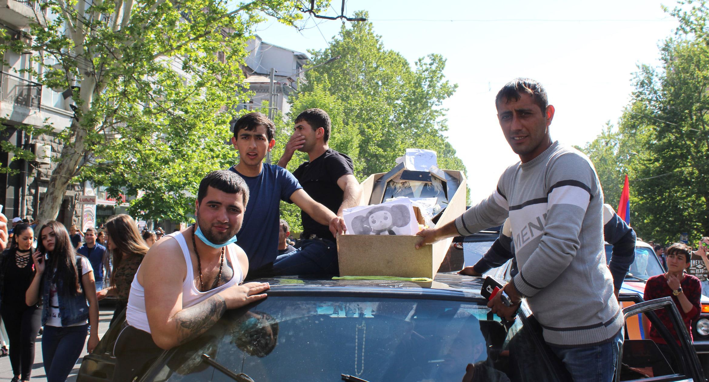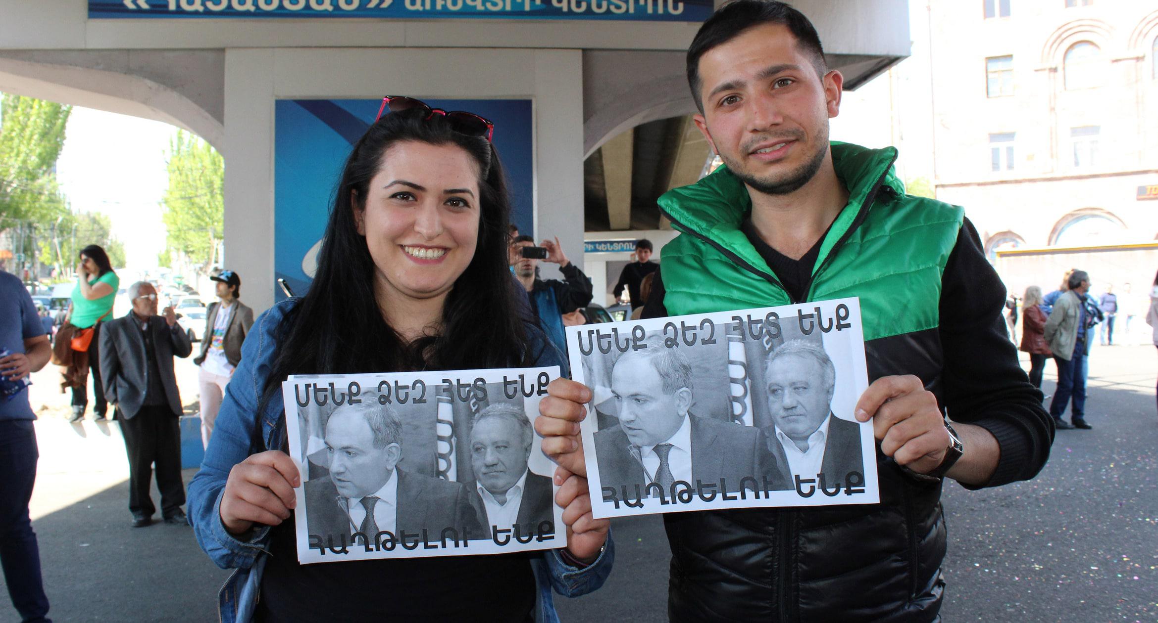 Сотни тысяч человек собрались на площади Республики в Ереване, где проходит митинг оппозиции. Протестующие празднуют отставку Саргсяна и поздравляют друг друга. Ереван, 23 апреля 2018 г. Фоторепортаж корреспондента “Кавказского узла” Тиграна Петросяна